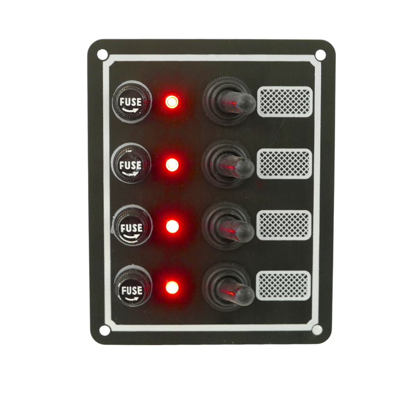 • Backlight LED indicator for each switch, lights up when switch is turned on.