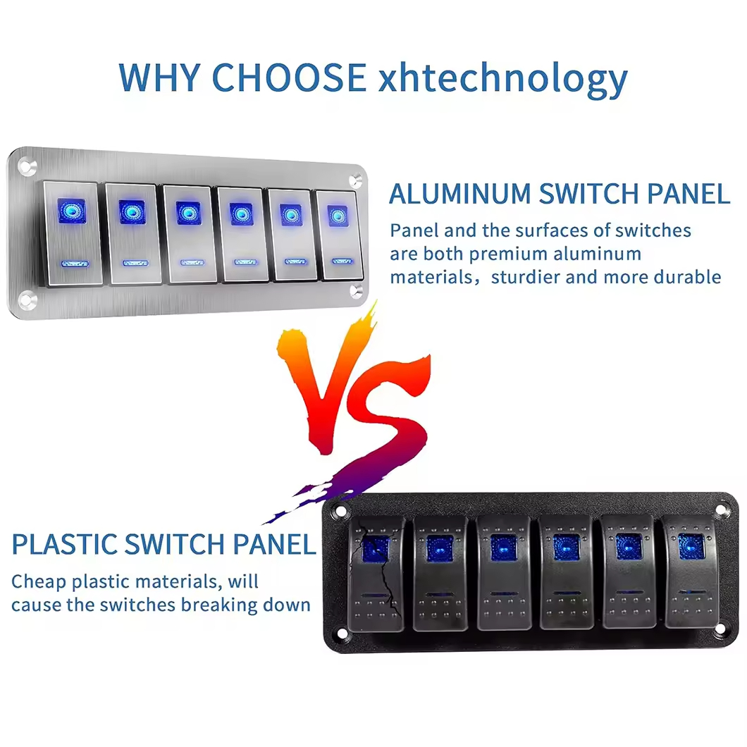 Durable Aluminum Switch Panel: Our rocker switch panel features a robust aluminum cover and base, offering superior durability compared to standard plastic switches. This enhanced durability not only saves replacement costs but also ensures a longer lifespan for your switches.